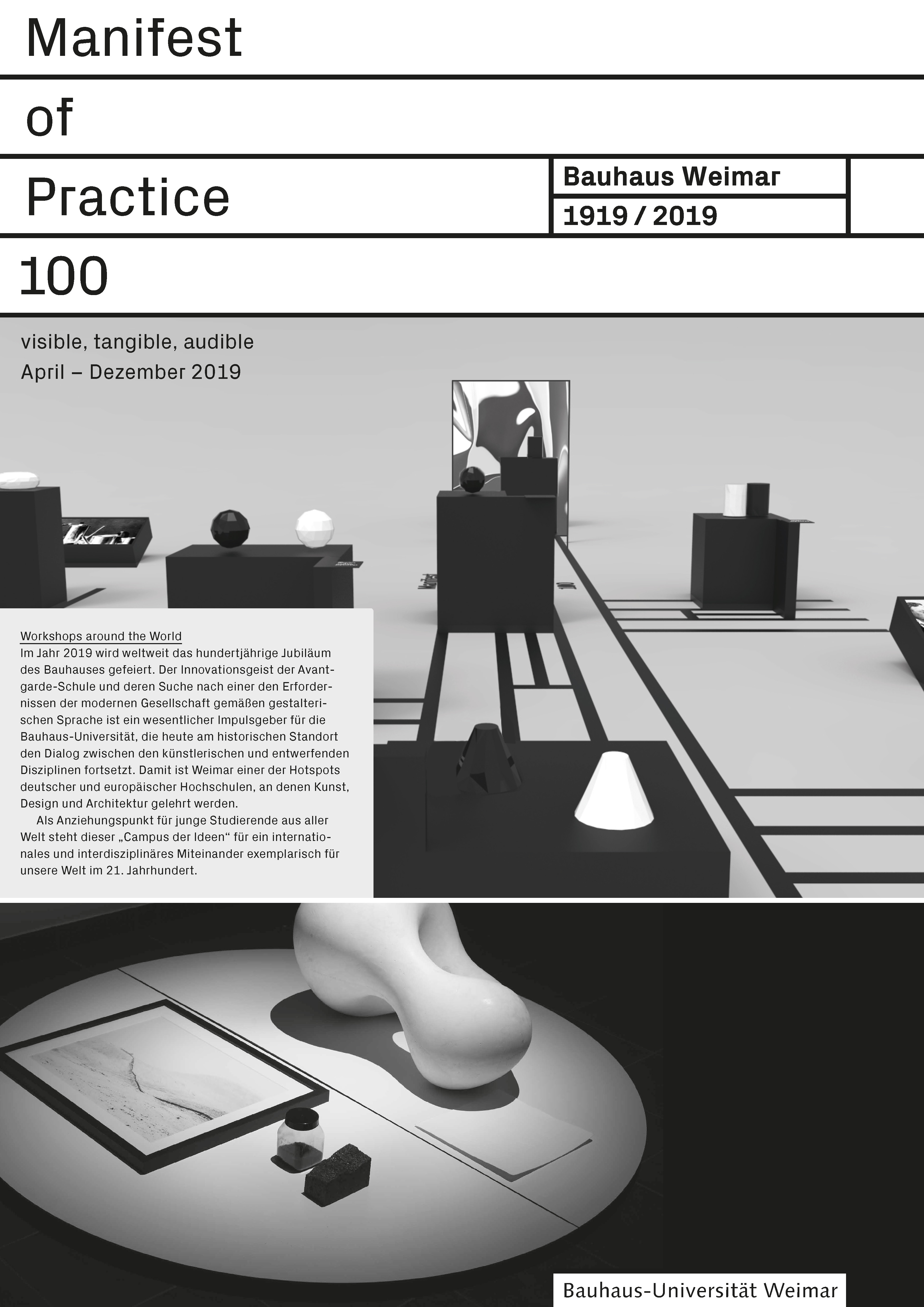 »Manifest of Practice« stellt zeitgenössische Positionen der Fakultät Kunst und Gestaltung vor und zeigt exemplarisch den aktuellen Dialog zwischen künstlerischen und entwerfenden Disziplinen an der Universität. Dieser »Campus der Ideen« steht für ein internationales und interdisziplinäres Miteinander im 21. Jahrhundert.