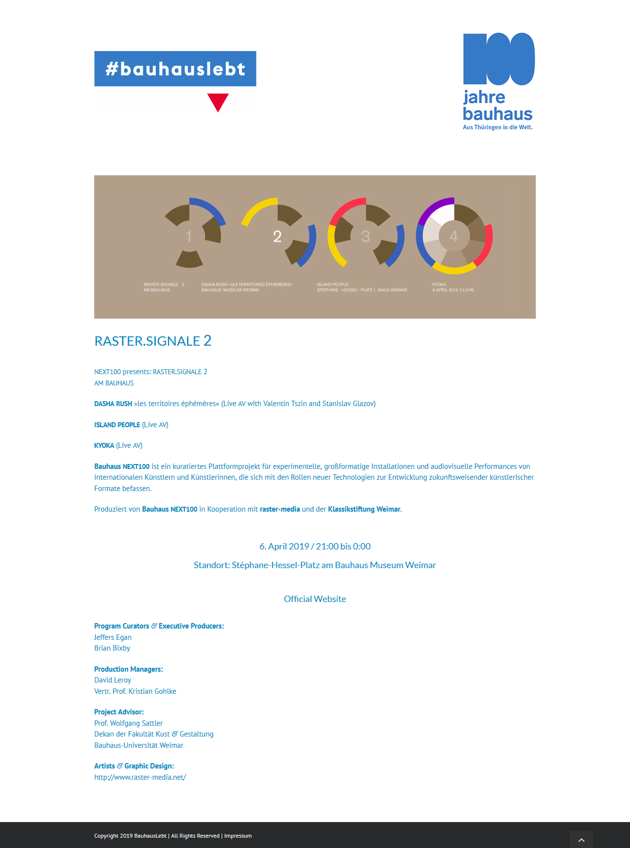 The Raster.Signale series is an Audio/Visual showcase by Raster Media artists that explores both the interplay of sight and sound and the lasting influence of the Bauhaus on contemporary media art production and musical performance.