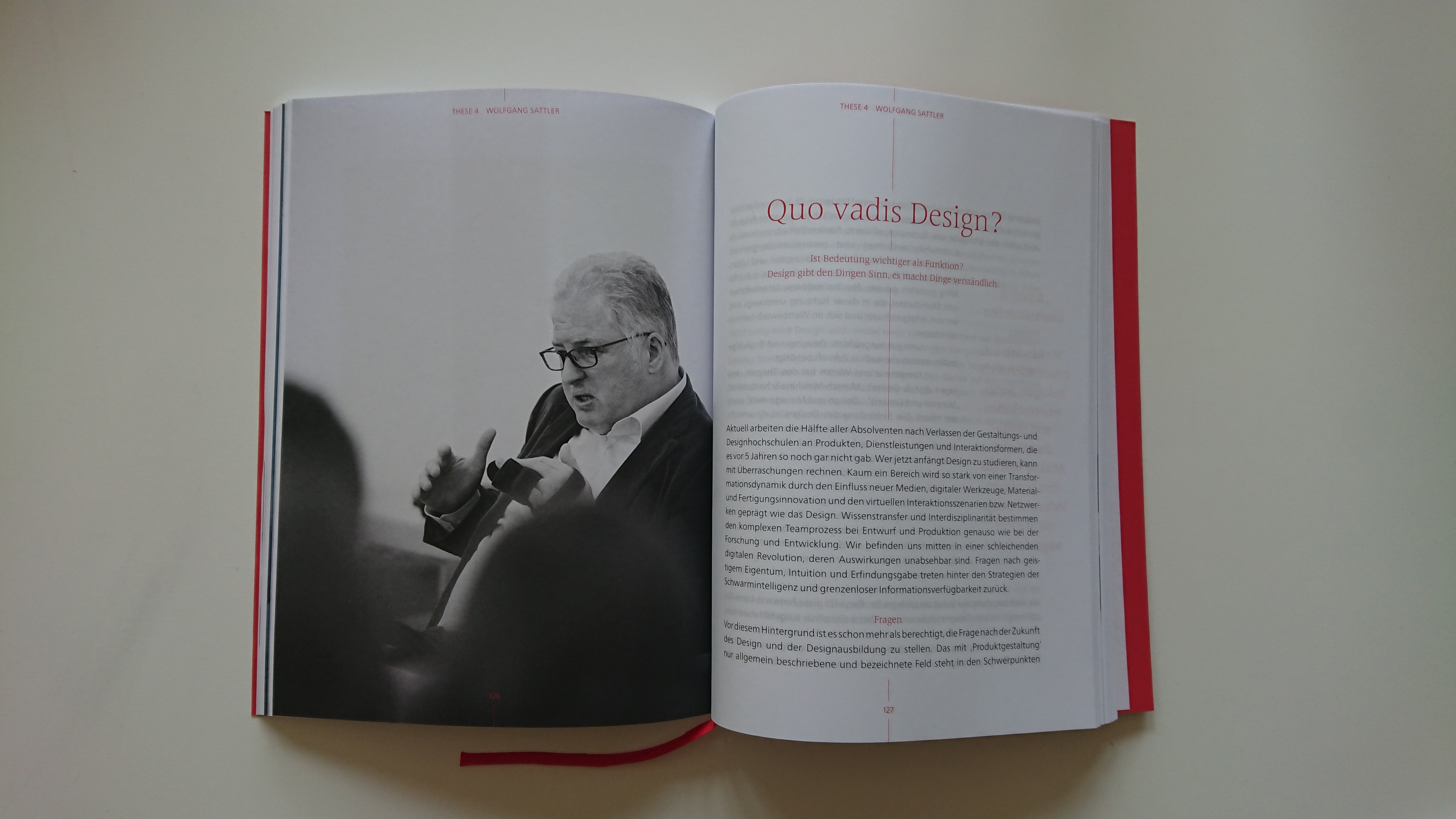 W. Sattler. 2014. Quo Vadis Design - Ist Bedeutung Wichtiger als Funktion?. Textbeitrag in: Industrie Forum Design: Quo Vadis Design?– 4 Thesen. Prof. Dr. W. Vossenkuhl (Hrsg.). p.127-143. ISBN: 978-3942776301.