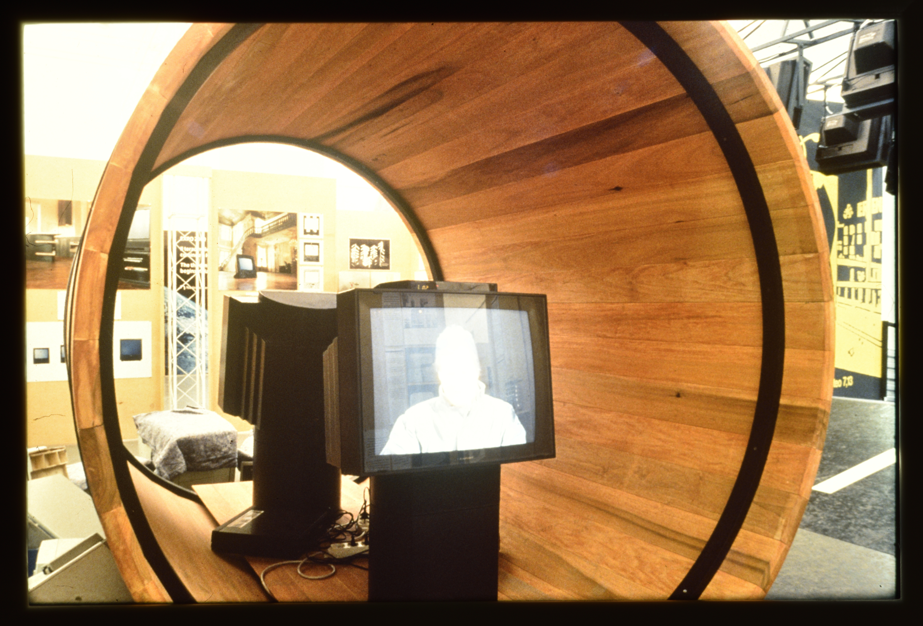In der Mitte der Ausstellung öffnet sich der Raum zu einer "Agora". Hier treffen wir wieder die eiligen Ausstellungsbesucher und lauschen gemeinsam - z.B. auf einer verschrotteten Waschmaschine sitzend - den Ausführungen Diogenes´. Denn: trotz aller Mühe bleibt uns bewußt, daß wir von einer "umweltbewußten" Produktion noch weit entfernt sind, und die Müll- und Giftberge ständig wachsen, daß ein kleiner Teil unserer Welt einem sogenannten Wohlstand frönt, während der Rest under den Folgen leidet.